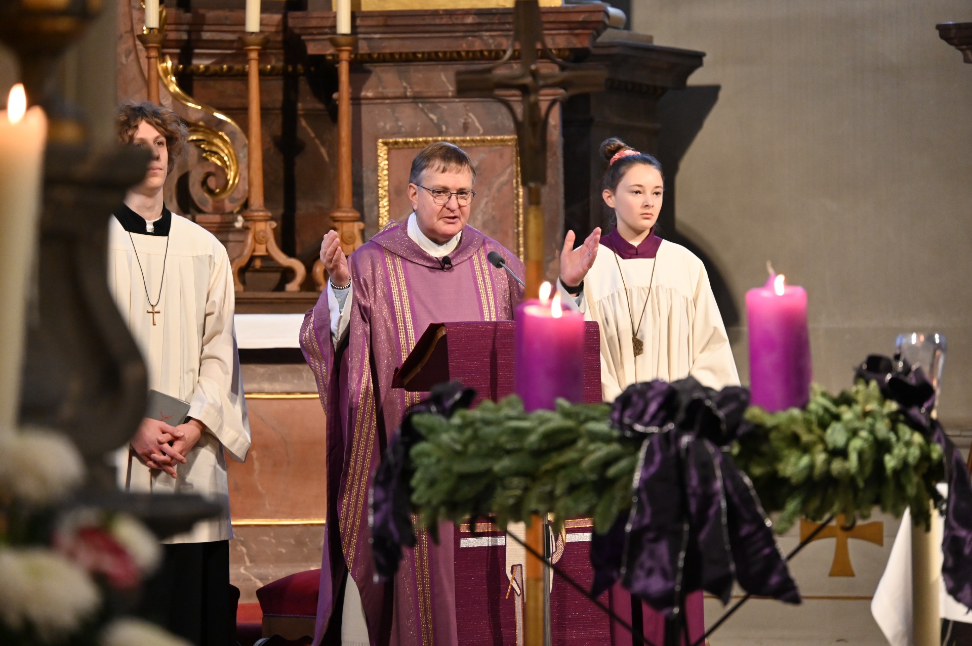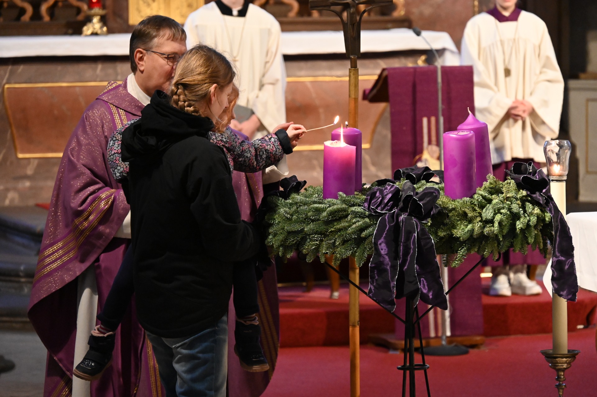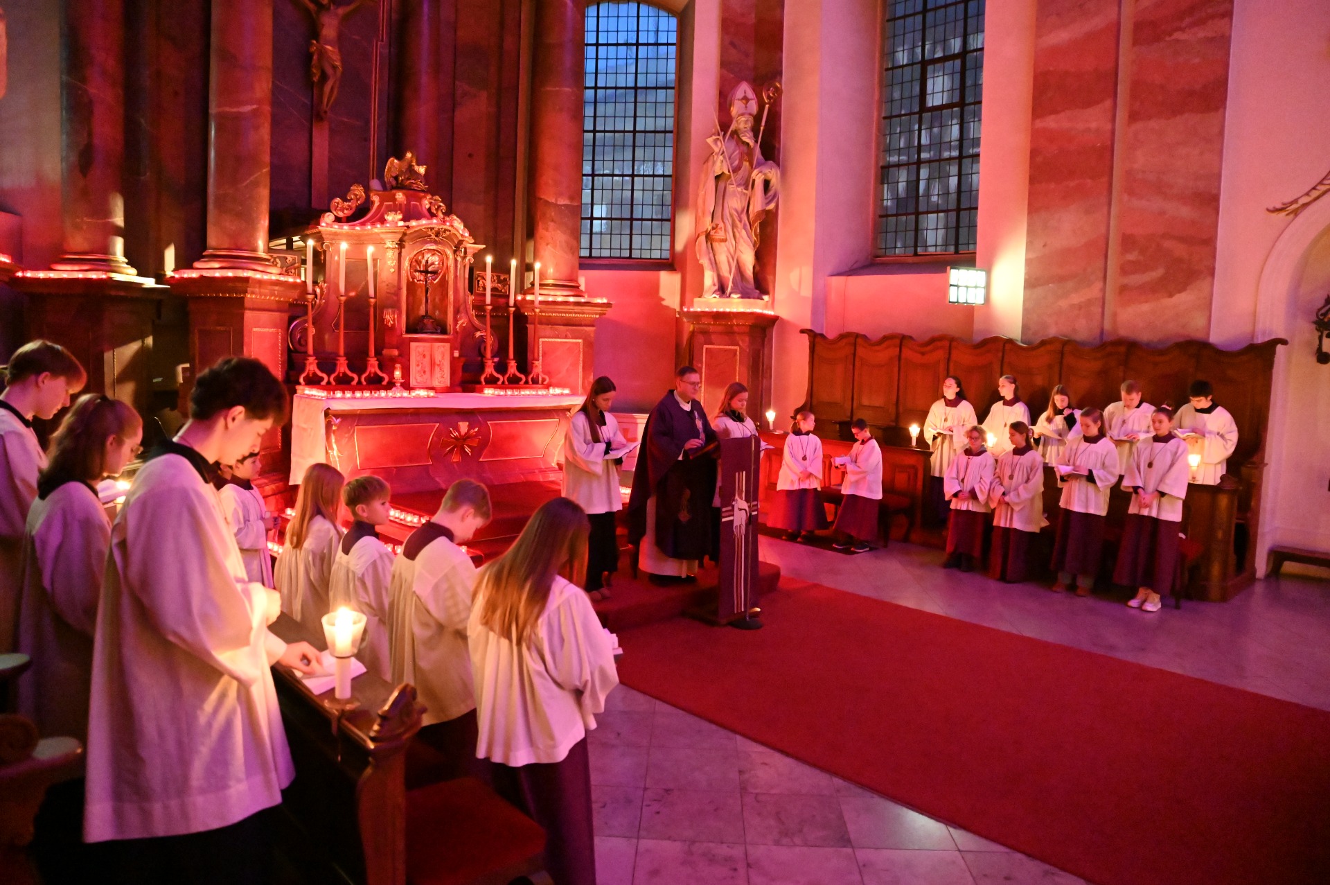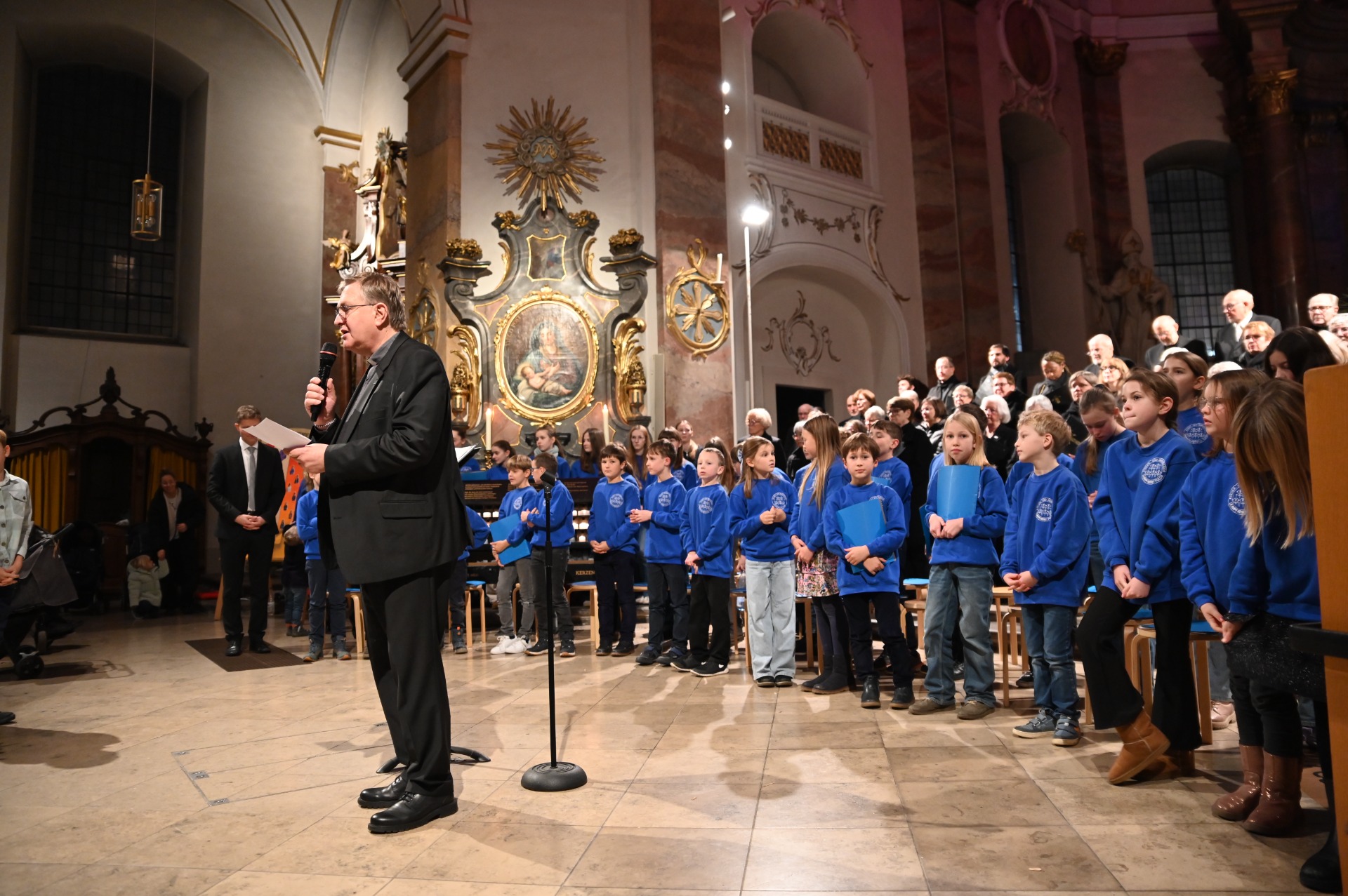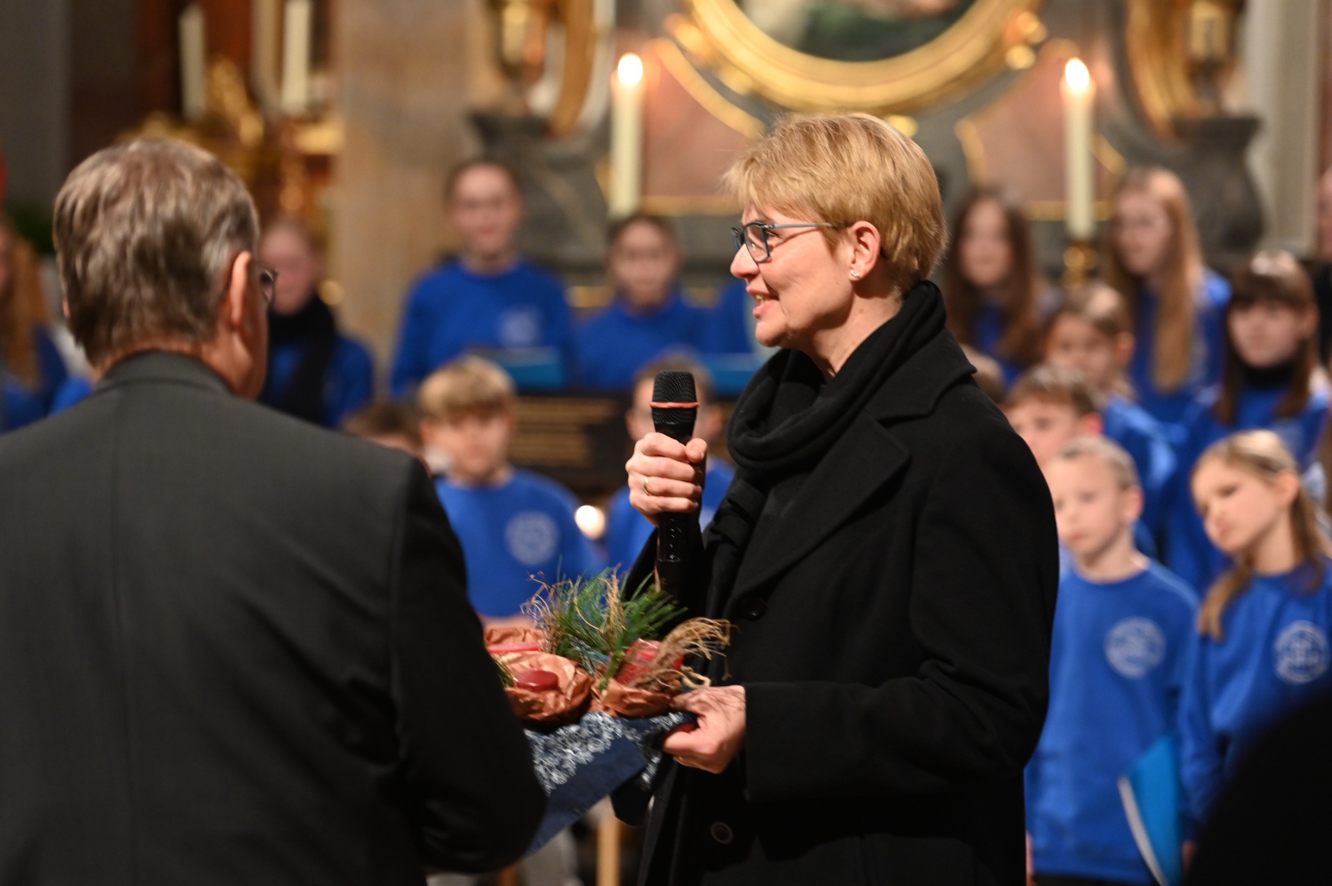 Der Stadtpfarrchor und der Kinder- und Jugendchor unter der leitung von Anne Rioll und Johannes Haubs luden in die Stadtpfarrkirche zur Mitsingstunde im Advent ein. Jochen Rill an der Orgel und Katharina Sonta mit der Querflöte begleiteten. Stadtpfarrer Stefan Buß gab kurze Adventsimpulse und am ende den Segen für eine gute Adventszeit