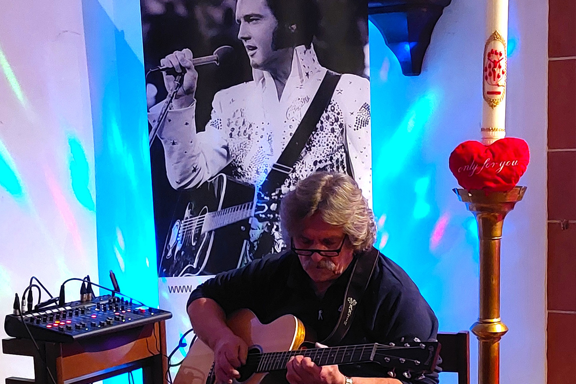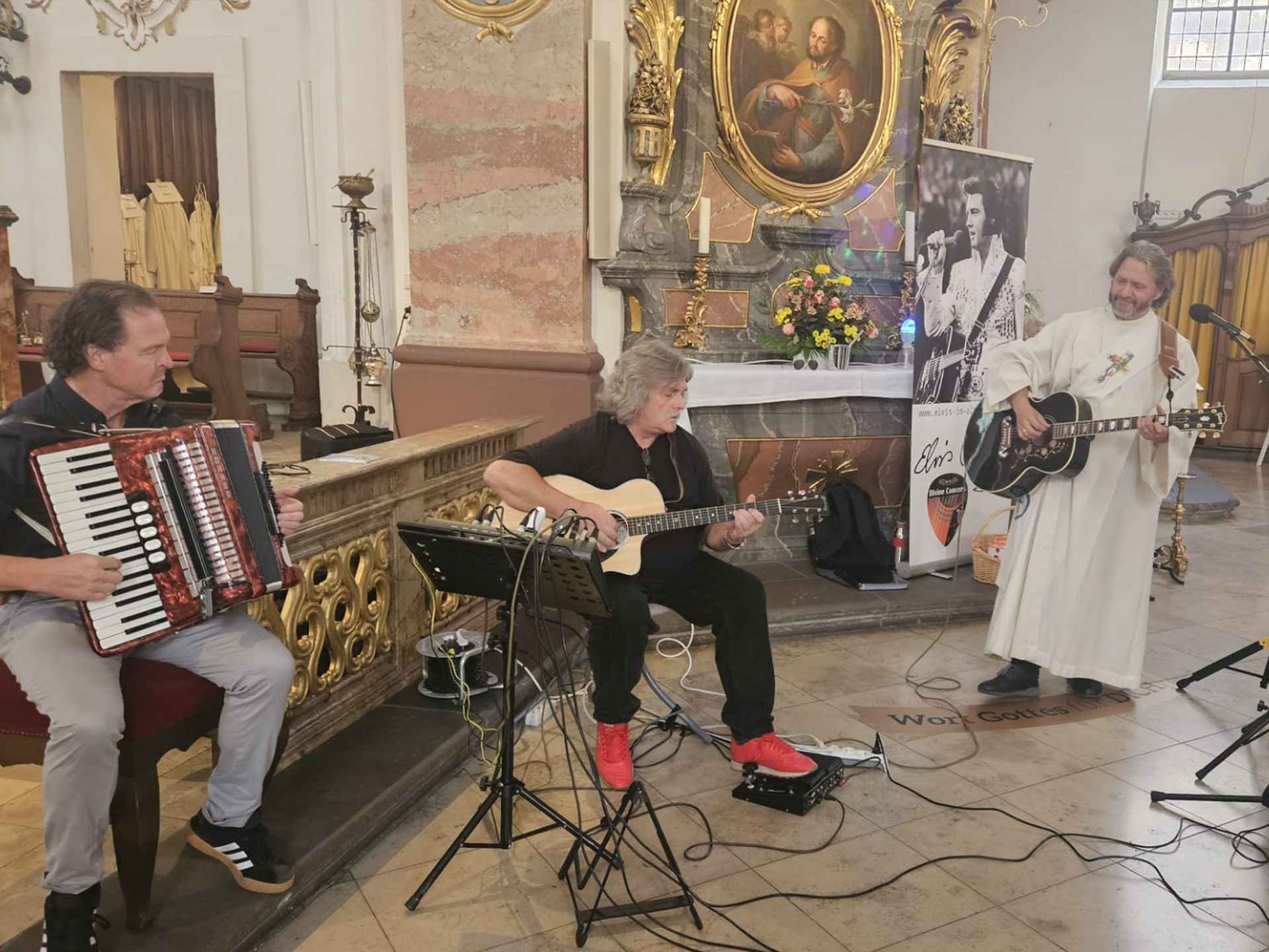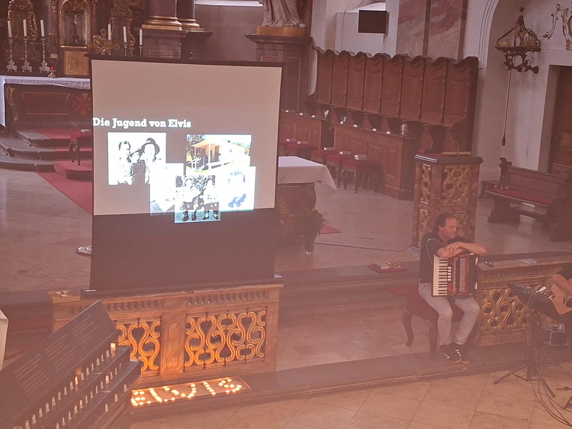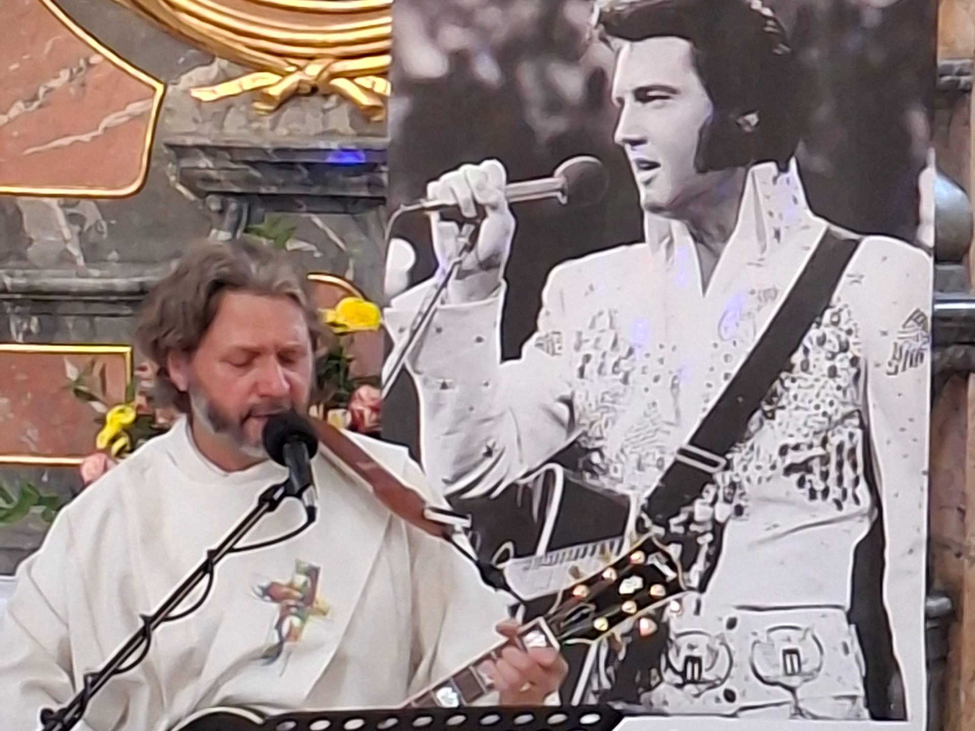Am 16. August 2025, dem Todestag von Elvis Aaron Presley, erlebte die Fuldaer Stadtpfarrkirche einen unvergesslichen Samstag, als sie Gastgeberin der besonderen „Elvis-Reise” war. „Crying in the Chapel” war das Motto des Tages. Nach der bewegenden Abendmesse mit Stadtpfarrer Buß entfaltete sich ein Programm, das die Herzen der Anwesenden im Sturm eroberte. Dank der sorgfältigen Organisation von Diakon Dr. Meins Coetsier, Divine Concern, Helmut Krause und dem engagierten Team der Fuldaer Stadtpfarrei wurde ein unvergessliches Erlebnis geschaffen. Die schön beleuchtete Kirche erstrahlte dabei in einem ganz besonderen Glanz. Die Messe und der anschließende Abend waren sehr gut besucht und entwickelten im Laufe der Zeit einen mitreißenden Schwung, bei dem ausgelassen mitgesungen, begeistert geklatscht und sogar getanzt wurde. Pfarrer Fred Omvlee aus den Niederlanden führte die Menschen mit einer einzigartigen Mischung aus Leben, Glauben und der unsterblichen Musik des „King of Rock ’n’ Roll” durch den Abend. Dies begeisterte nicht nur eingefleischte Fans, sondern auch viele neugierige Besucher und machte diesen Abend zu einem strahlenden Höhepunkt im von Papst Franziskus ausgerufenen Heiligen Jahr.