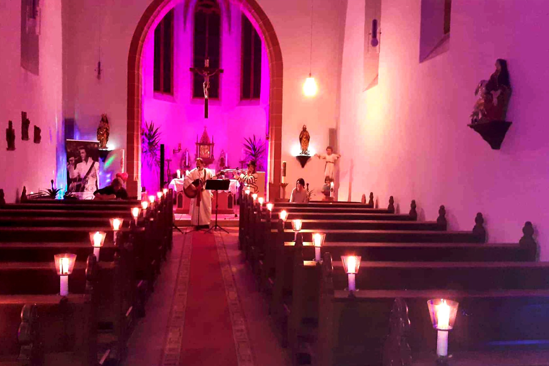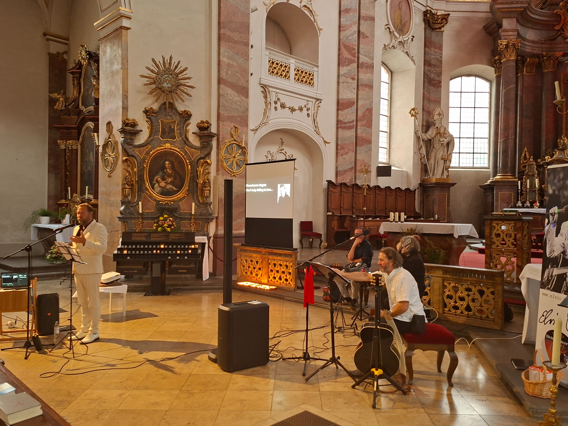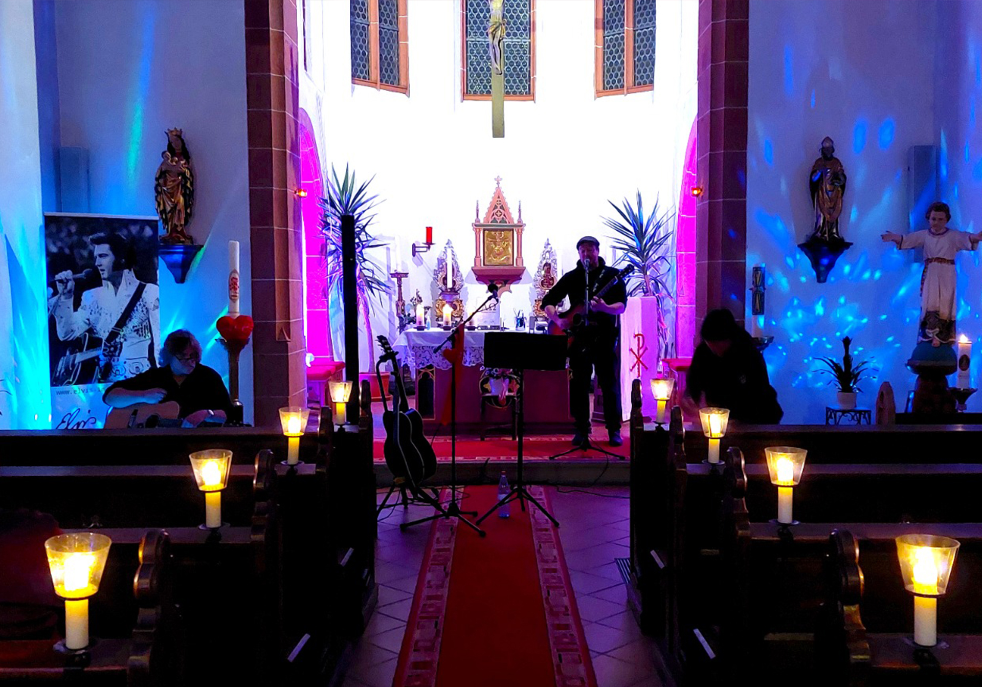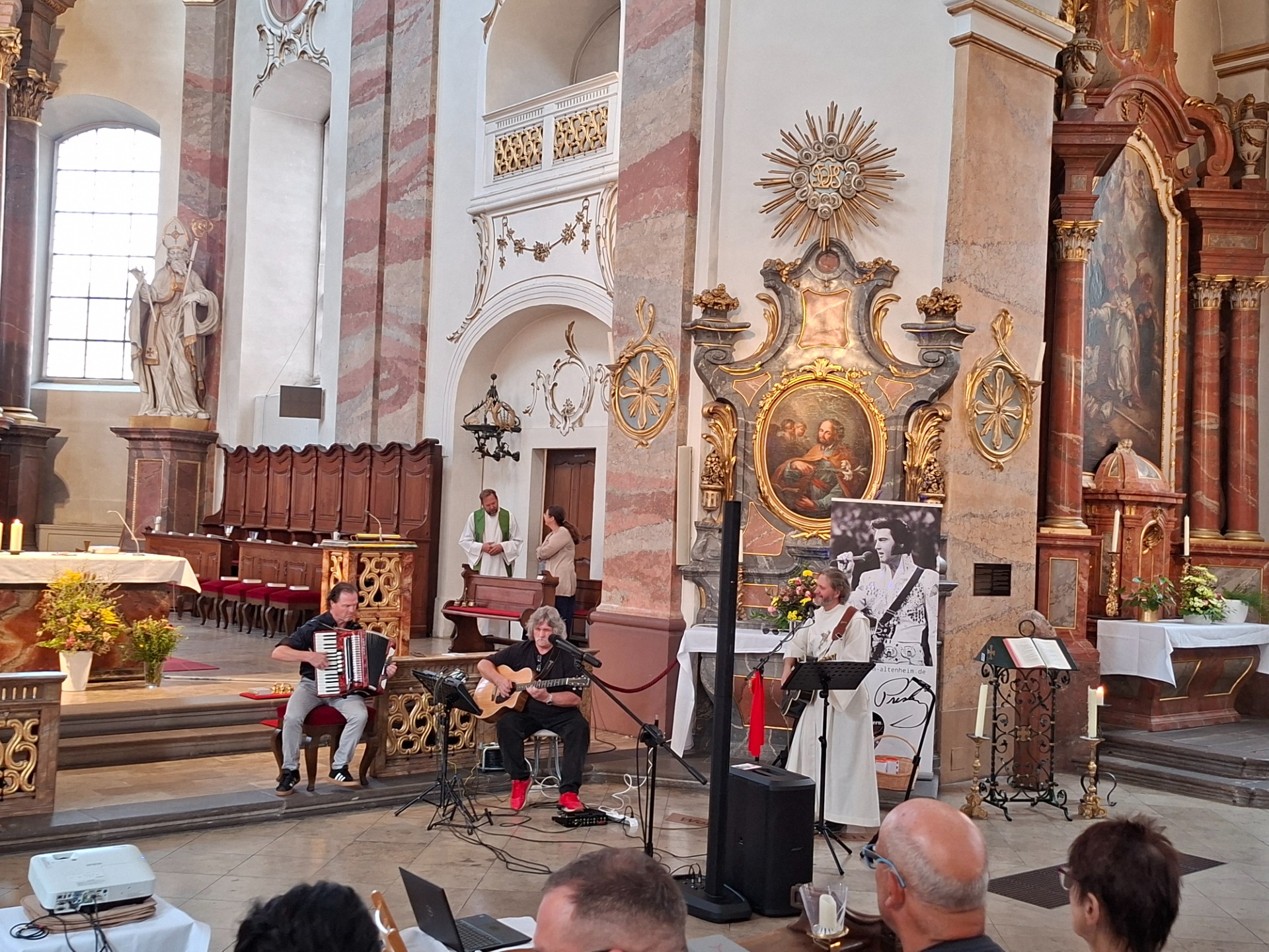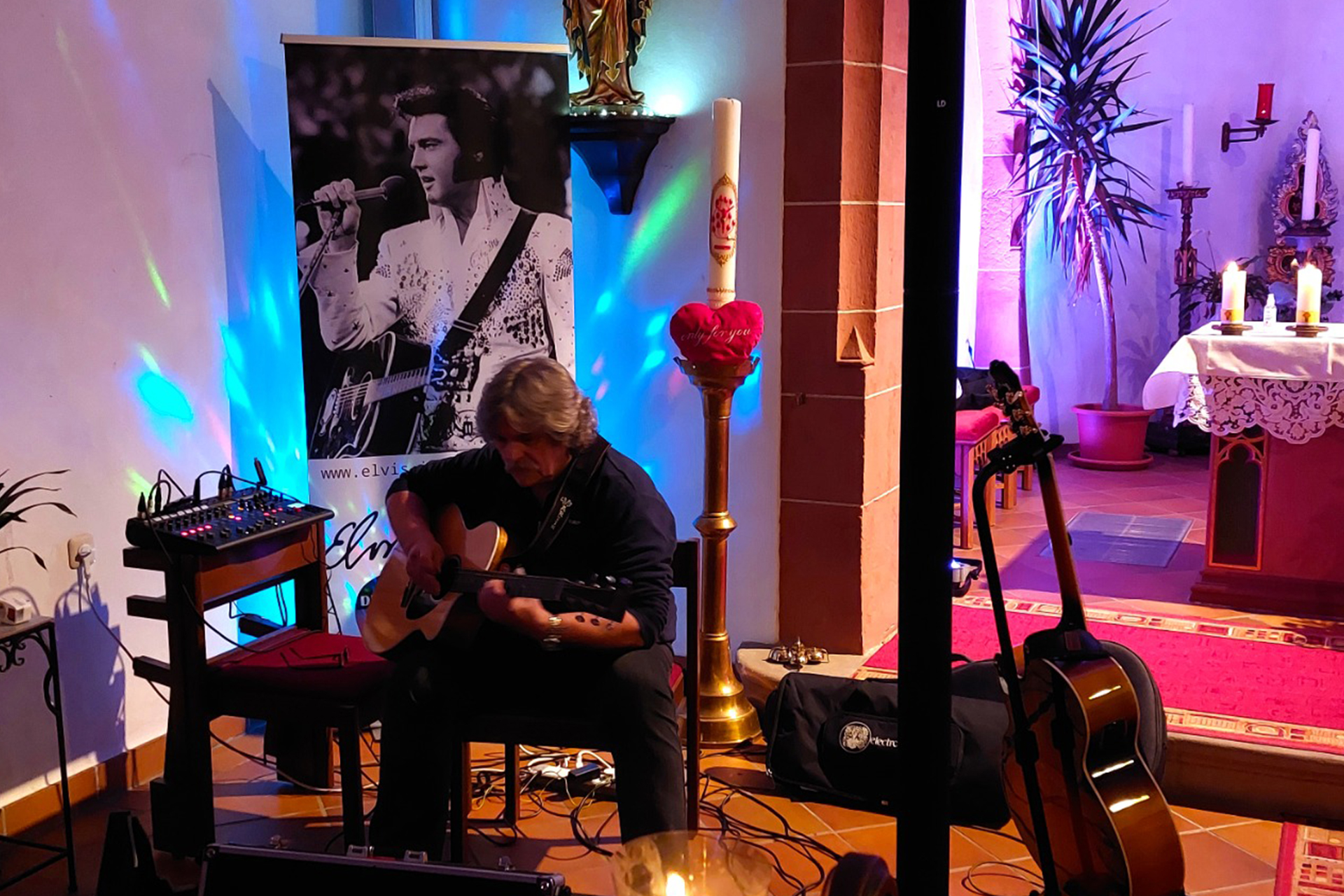 Am 16. August 2025, dem Todestag von Elvis Aaron Presley, erlebte die Fuldaer Stadtpfarrkirche einen unvergesslichen Samstag, als sie Gastgeberin der besonderen „Elvis-Reise” war. „Crying in the Chapel” war das Motto des Tages. Nach der bewegenden Abendmesse mit Stadtpfarrer Buß entfaltete sich ein Programm, das die Herzen der Anwesenden im Sturm eroberte. Dank der sorgfältigen Organisation von Diakon Dr. Meins Coetsier, Divine Concern, Helmut Krause und dem engagierten Team der Fuldaer Stadtpfarrei wurde ein unvergessliches Erlebnis geschaffen. Die schön beleuchtete Kirche erstrahlte dabei in einem ganz besonderen Glanz. Die Messe und der anschließende Abend waren sehr gut besucht und entwickelten im Laufe der Zeit einen mitreißenden Schwung, bei dem ausgelassen mitgesungen, begeistert geklatscht und sogar getanzt wurde. Pfarrer Fred Omvlee aus den Niederlanden führte die Menschen mit einer einzigartigen Mischung aus Leben, Glauben und der unsterblichen Musik des „King of Rock ’n’ Roll” durch den Abend. Dies begeisterte nicht nur eingefleischte Fans, sondern auch viele neugierige Besucher und machte diesen Abend zu einem strahlenden Höhepunkt im von Papst Franziskus ausgerufenen Heiligen Jahr.