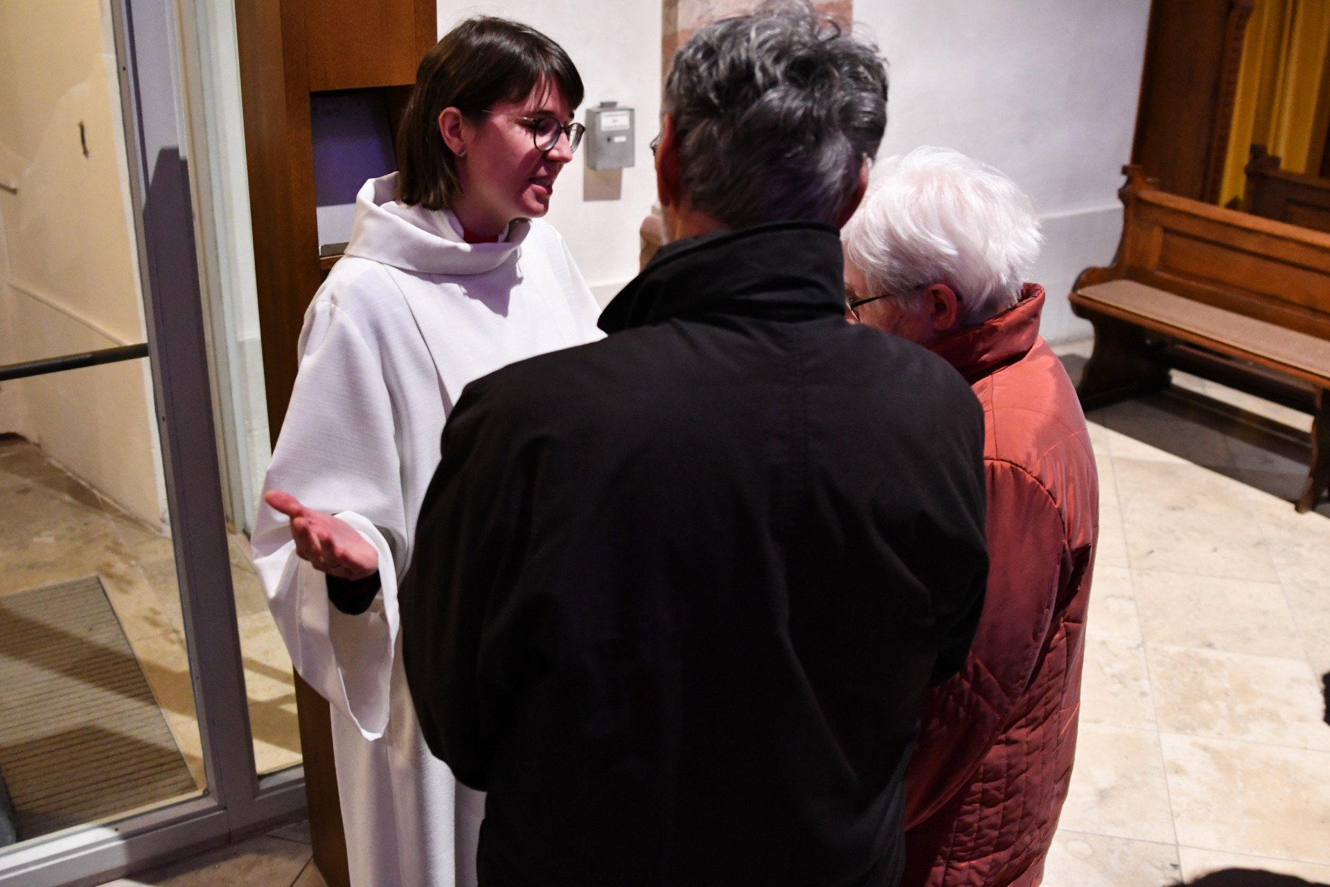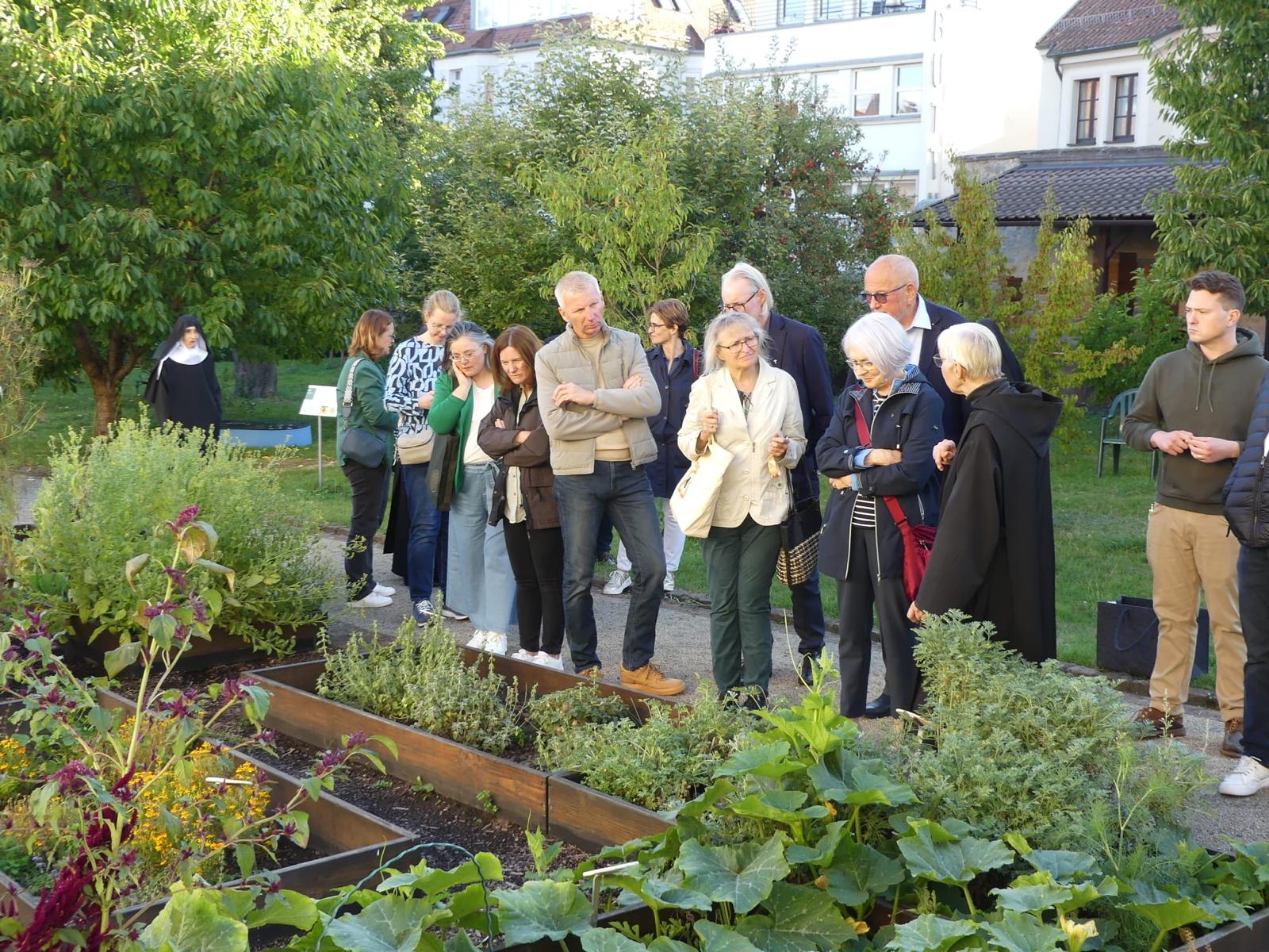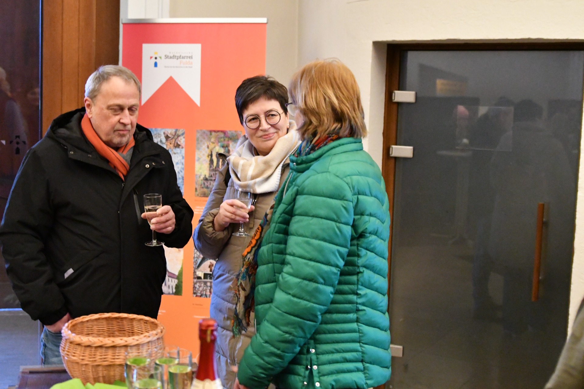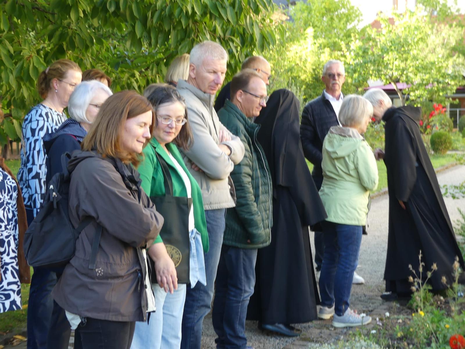 Seit Advent 2024 stehen sie in einer besonderen Beziehung und Nachbarschaft die Abtei St. Maria der Benediktinerinnen und der Stadtpfarrei Fulda. Bisher trennte beide eine Klostermauer. Im letzten Jahr entstand in dem Gebäude, das früher das Atelier der Künstlernonnen Lioba Munz beherbergte, das Haus der Kirche – Lioba Munz der Stadtpfarrei. Damit sind beide enger zusammengewachsen. Die Stadtpfarrei, die in die Stadt hineinwirken möchte und die Benediktinerinnen, die durch Ihre Präsenz und ihr Gebet mitten in der Stadt die anliegen der Menschen mittragen. Auf Einladung von Äbtissin Benedikta Kranz und des Konventes war Stadtpfarrer Stefan Buß und die Gremien von Verwaltungsrat und Pfarrgemeinderat der Stadtpfarrei im Kloster zu Gast. Alle erhielten so einen Einblick in das Innere des Klosters. Nach dem gemeinsamen Gebet des Abendgebetes der Kirche, gab es anschließend noch einen regen Austausch bei einem gemeinsamen Essen im Haus der Kirche. Es wurde betont, dass die Begegnungen weiter gepflegt werden sollen und auch Überlegungen für gemeinsame Veranstaltungen in den Blick genommen werden sollen. Im nächsten Jahr sind die Benediktinerinnen 400 Jahre in Fulda.