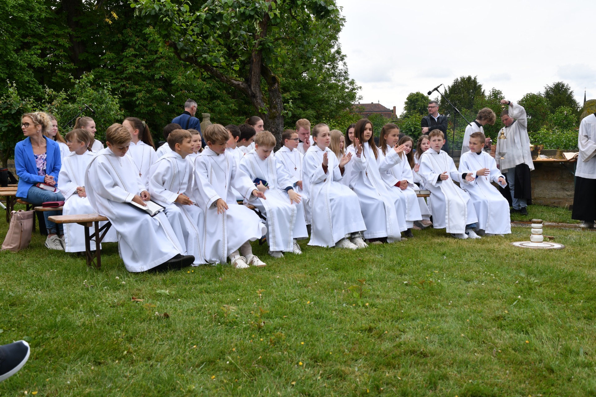 Herzlich Grüßen unsere Erstkommunionkinder aus Kleinsassen! Sie verbringen dort das Wochenende gemeinsam mit Gemeindereferentin Mona Müller, Stadtpfarrer Buß und dem Katechetenteam.