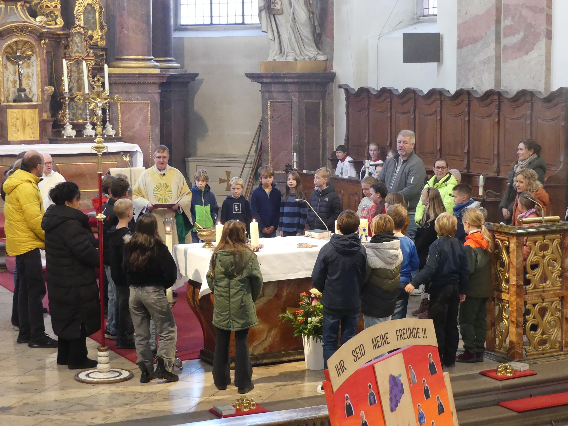 Im heutigen Gottesdienst am Christkönigsfest wurden die Erstkommunionkinder der Stadtpfarrei vorgestellt. Miteinander machen Sie sich auf den Weg um Freundinnen und Freunde Jesu zu werden.
