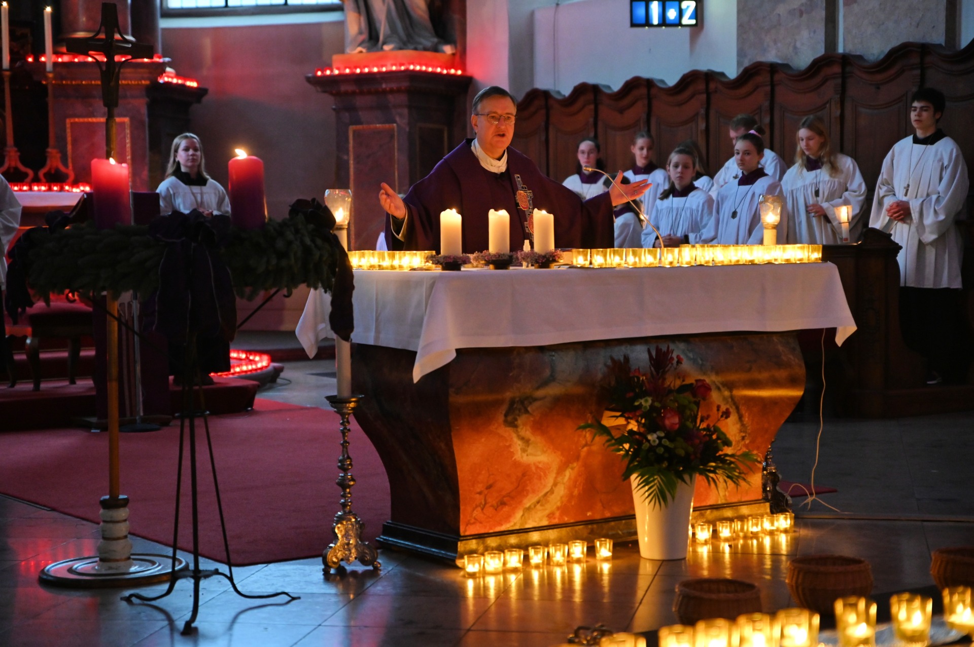 „Der Pilger der Hoffnung – im Advent Johannes dem Täufer begegnen“ unter diesem Motto stand die diesjährige Roratemesse gestaltet von den Ministranten. Stadtpfarrer Stefan Buß war als Pilger der Hoffnung wieder dabei.
