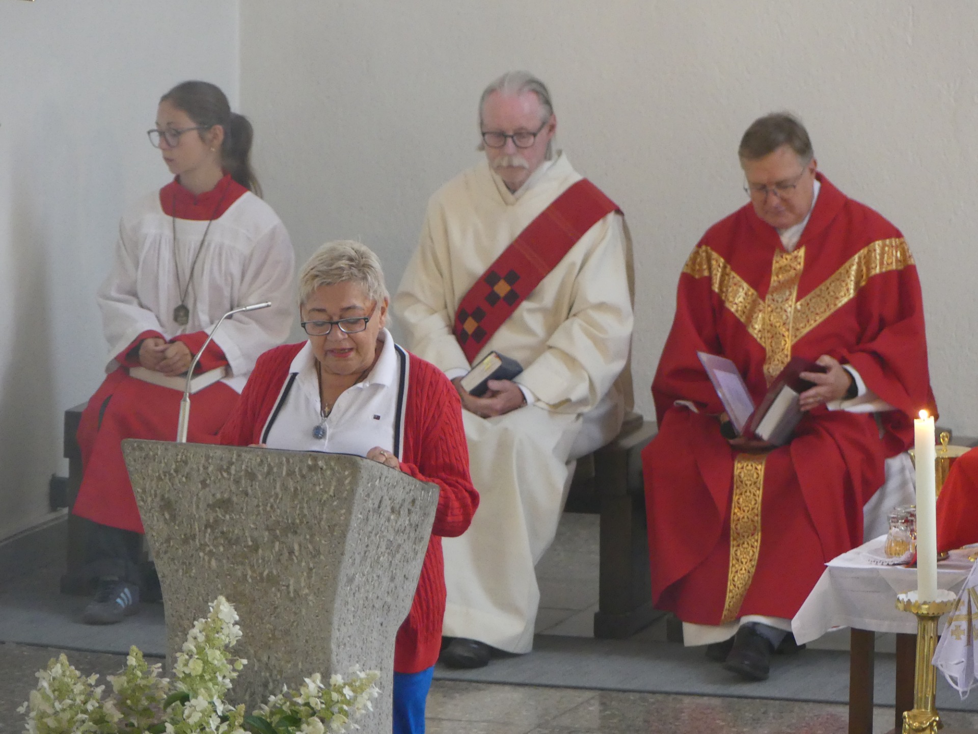 Gestern startete unsere Gottesdienstreihe zu unserem Kunstprojekt! Zu allen unseren Kirchen sind von Dr. Henriette Klasmeier Gemälde entstanden, die nun auch in den Kirchen als Postkarten ausliegen. Die Gottesdienstreihe behandelt das Credo und wird im Jahr verteilt in allen unseren Kirchen stattfinden. Dabei werden auch Pfarrgemeinderatsmitglieder ein Zeugnis geben.