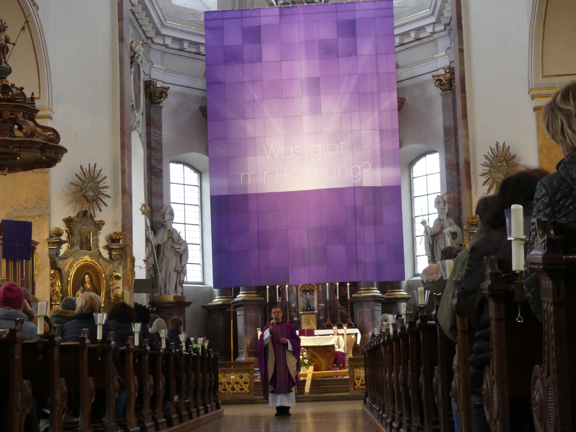 Am vergangenen Sonntag konnten wir gemeinsam mit @antonius_gemeinsam_mensch einen Familiengottesdienst feiern. Anlass war unser diesjähriges Fastentuch, dass wieder in Kooperation mit antonius entstanden ist. Es wirft die Frage auf "Was gibt mir Hoffnung?" Dieser Frage sind wir gestern gemeinsam mit P. Thomas nachgegangen. Musikalisch gestaltet wurde dieser Gottesdienst vom Ehepaar Haubs, vielen Dank dafür!