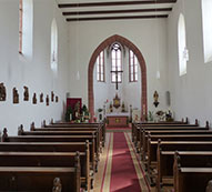 Die kath. Filialkirche St.Maria und Serverus ist ein schlichter gotischer Bau von Vier Fensterachsen mit eingezogenem, dreiseitig geschlossenem Chor.
