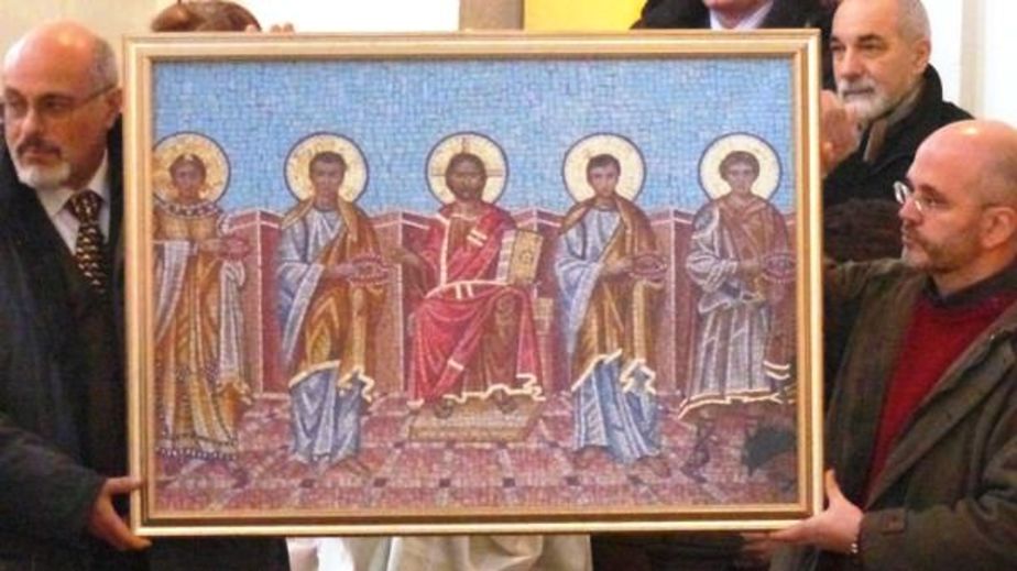Mosaikbild nach dem Fresko in der Generosa Katakombe, ein Geschenk von Magliana für Hainzell, zu sehen in der Kirche in Hainzell
